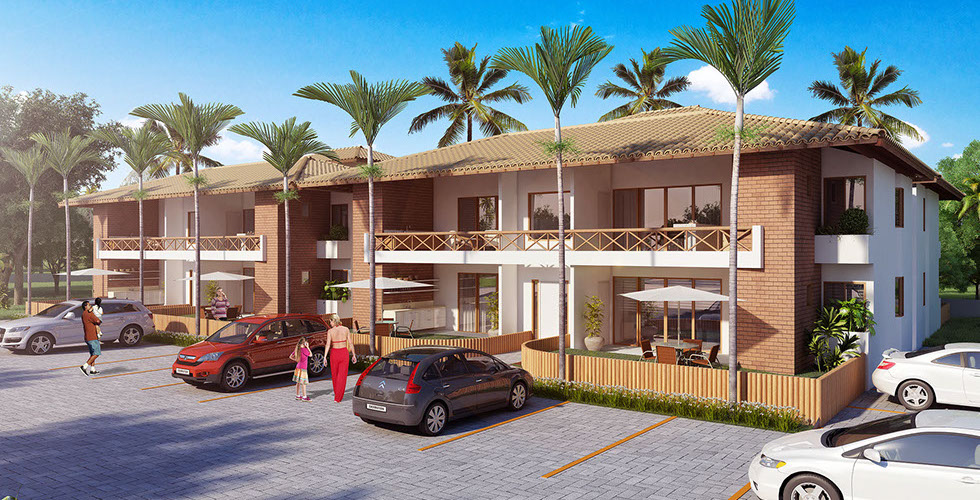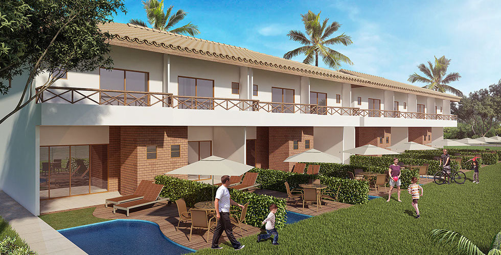 Perspectiva ilustrada do village com jardim opcional