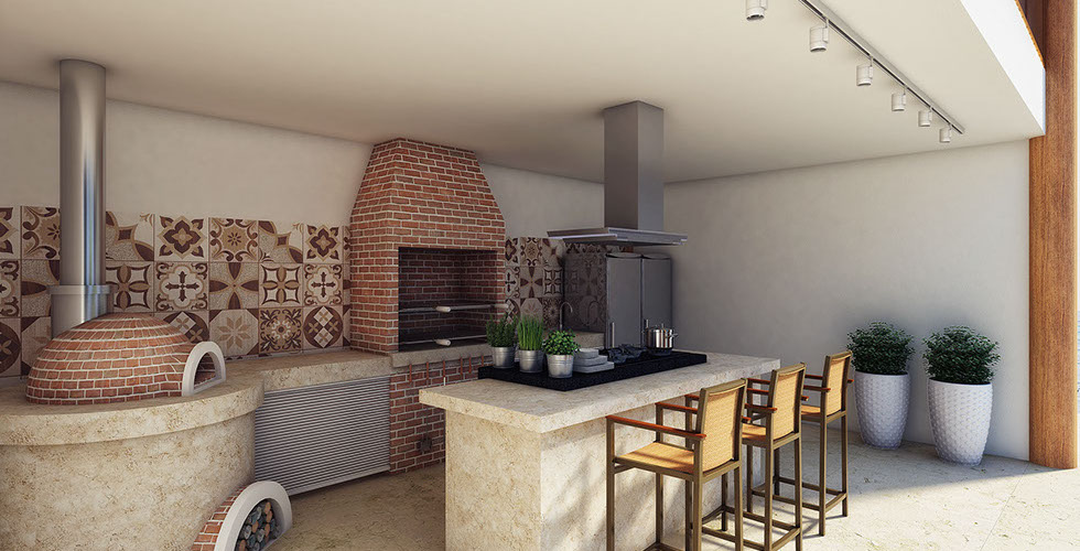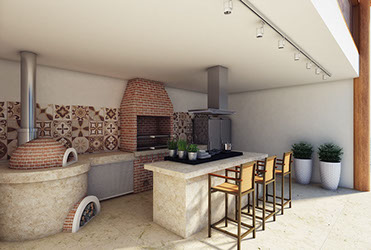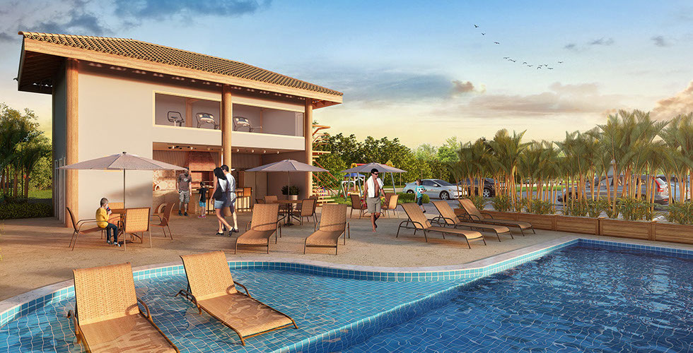 Perspectiva ilustrada da área de lazer