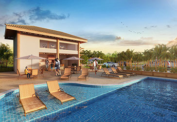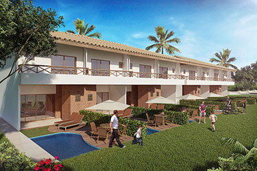 Um village com o charmoso projeto arquitetônico da HB&A, em perfeita harmonia com a natureza e muito lazer: