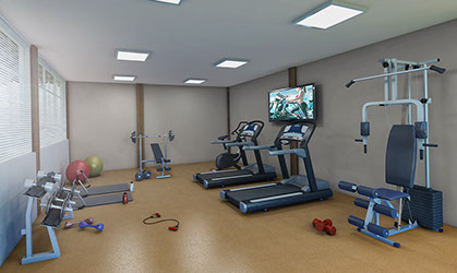Perspectiva ilustrada do espaço fitness